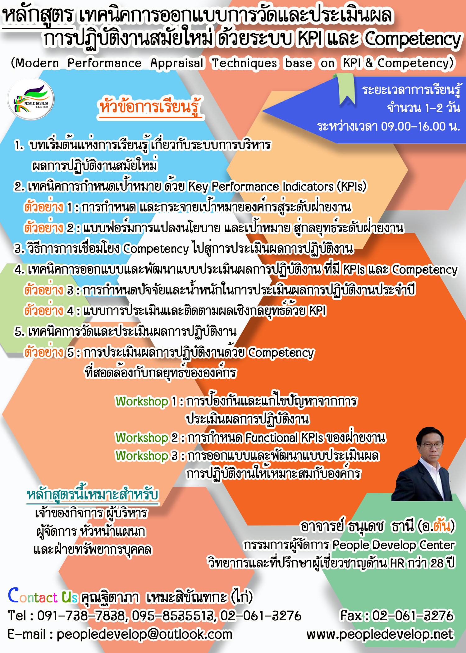เทคนิคการออกแบบการประเมินผลการปฏิบัติงานยุคใหม่ด้วย KPI และ Competency (Modern Performance Appraisal Techniques base on KPI & Competency) โดย อาจารย์ ธนุเดช  ธานี
