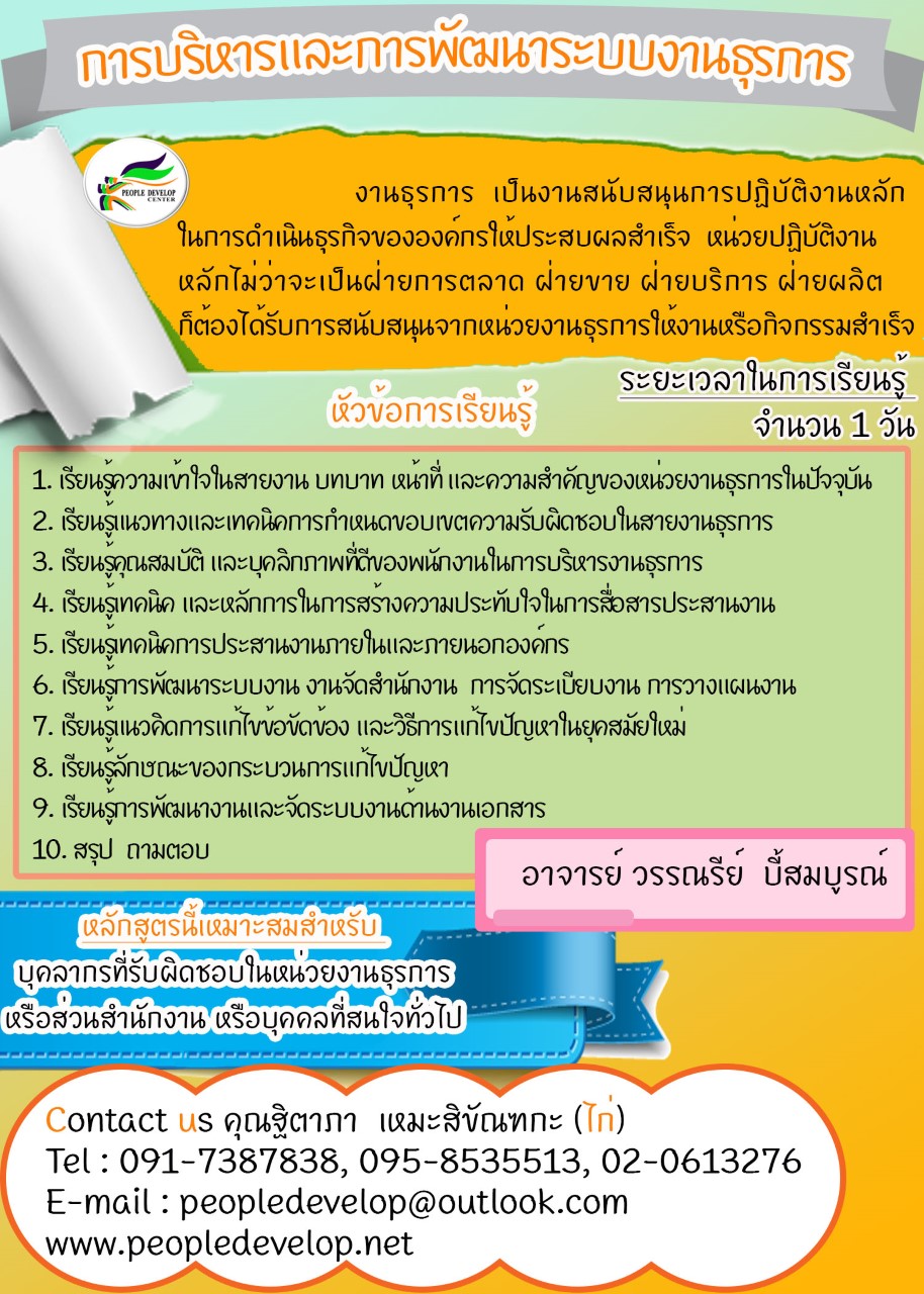 การบริหารและการพัฒนาระบบงานธุรการ : อาจารย์ วรรณรีย์  บี้สมบูรณ์
